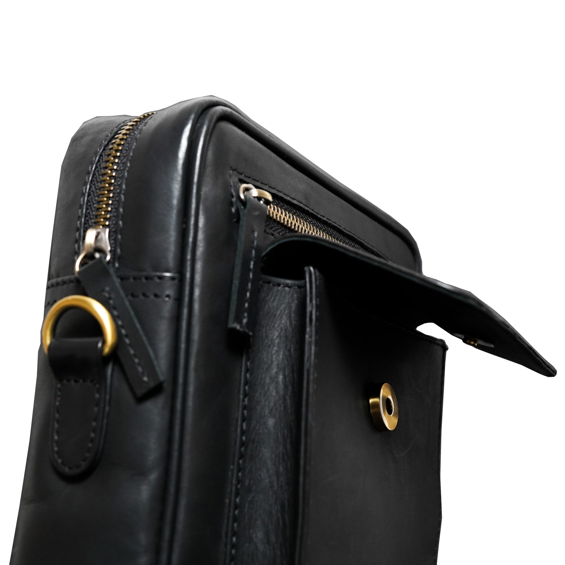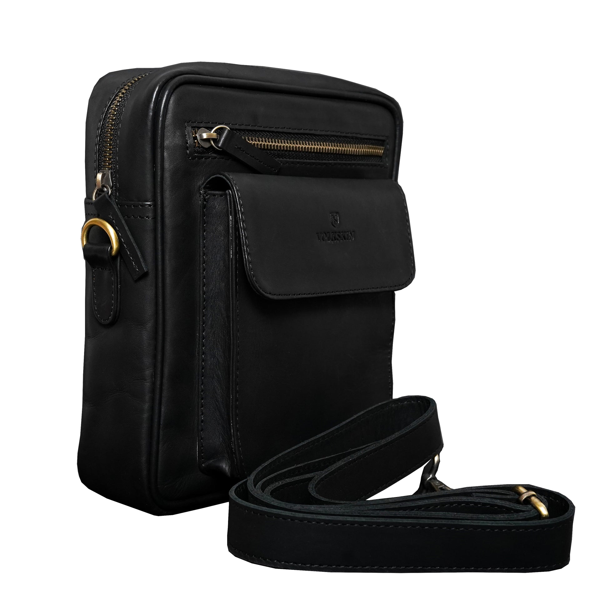 The Volkskin Leather Shoulder Bag in Black is made for men who carry the essentials with style. Crafted from 100% genuine leather – supple, robust, and processed with a precision you feel with every touch. The classic black makes it a universal companion: in the office, in the city, when traveling.